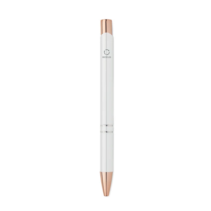 Przyciskany długopis z aluminium z recyklingu. Niebieski tusz.