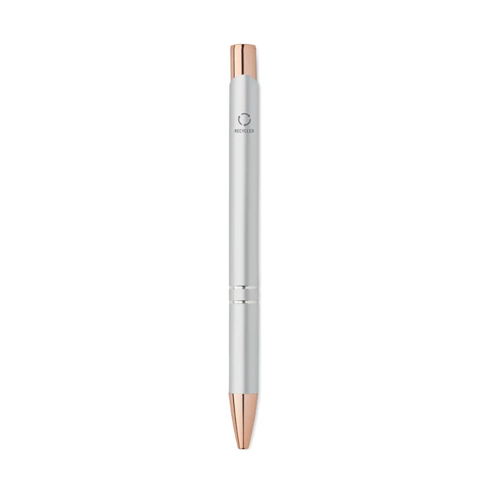 Przyciskany długopis z aluminium z recyklingu. Niebieski tusz.