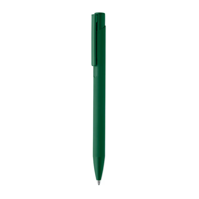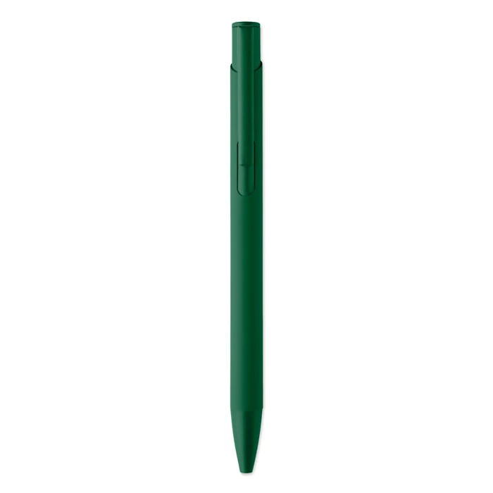 Długopis wciskany wykonany z aluminium pochodzącego z recyklingu, z żelaznym klipsem i kolorowym gumowanym korpusem. Niebieski tusz.