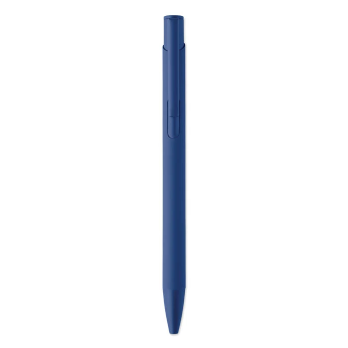 Długopis wciskany wykonany z aluminium pochodzącego z recyklingu, z żelaznym klipsem i kolorowym gumowanym korpusem. Niebieski tusz.