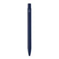 Długopis wciskany wykonany z aluminium pochodzącego z recyklingu, z żelaznym klipsem i kolorowym gumowanym korpusem. Niebieski tusz.