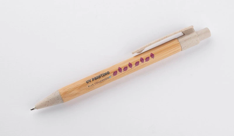 BAMMO to klasyczny długopis wykonany z materiałów przyjaznych środowisku. Bambusowy korpus połączony został z wykończeniami z tworzywa wykonanego w 50% ze słomy. Długopis automatyczny, wkład w kolorze niebieskim.