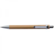 Długopis ekologiczny wykonany jest z bamusa i wyposażony w metalowe elementy. Długopis posiada przycisk, dzięki któremu pojawia i chowa się końcówka do pisania. Automatyczny długopis pisze na niebiesko.