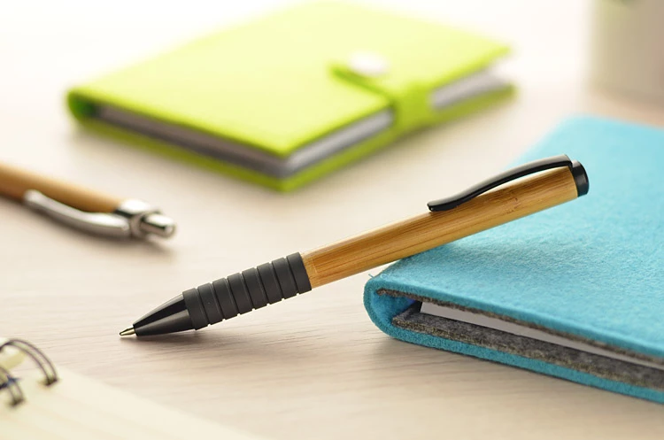 Miła odskocznia od tradycyjnych metalowych i plastikowych długopisów. Ten gadżet posiada korpus wykonany z litego kawałka bambusu. Całość uzupełniają gustowne wstawki i elementy mechanizmu w kolorze czarnym. Znakowanie możliwe na bambusowej części korpusu.