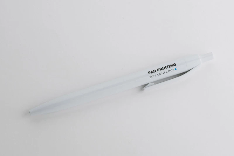 Plastikowy długopis BASIC z niebieskim wkładem. Logo nadrukujemy na korpusie.