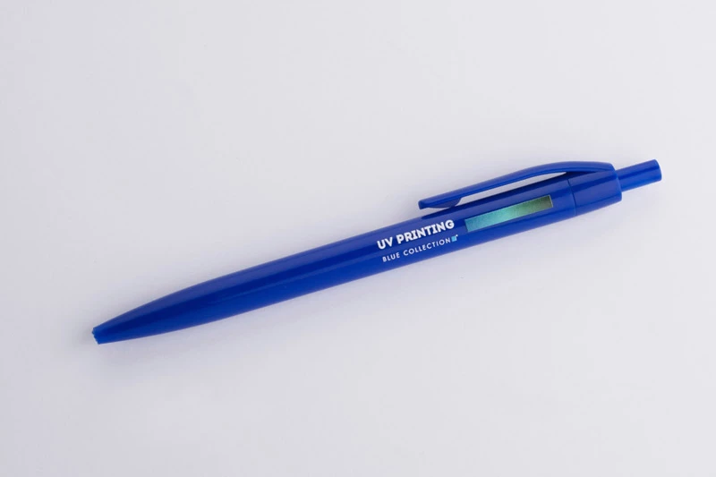 Plastikowy długopis BASIC z niebieskim wkładem. Logo nadrukujemy na korpusie.