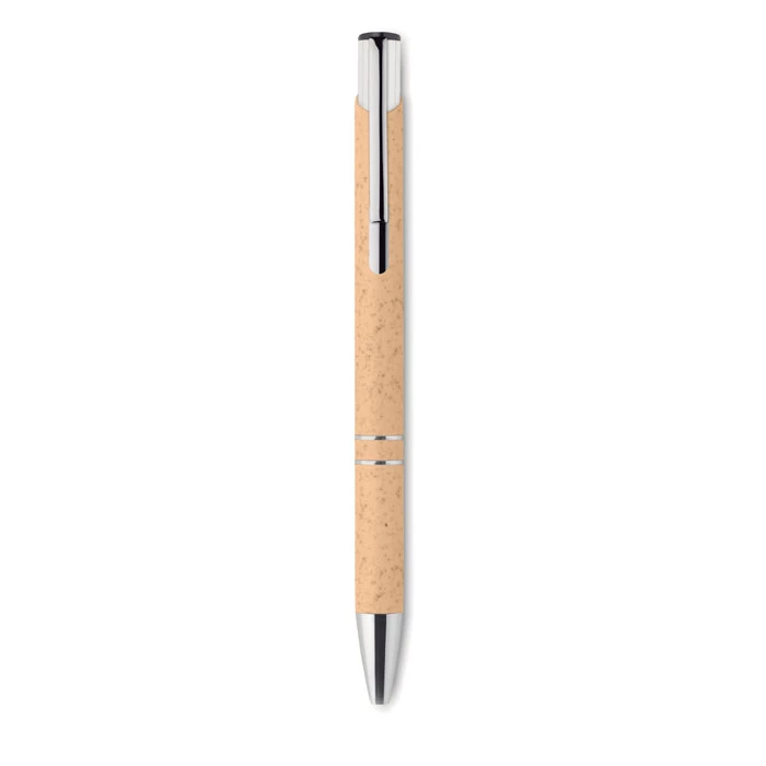 Długopis z przyciskiem 50% słomy pszennej 50% materiału ABS ze srebnym wykończeniem.Niebieski atrament.