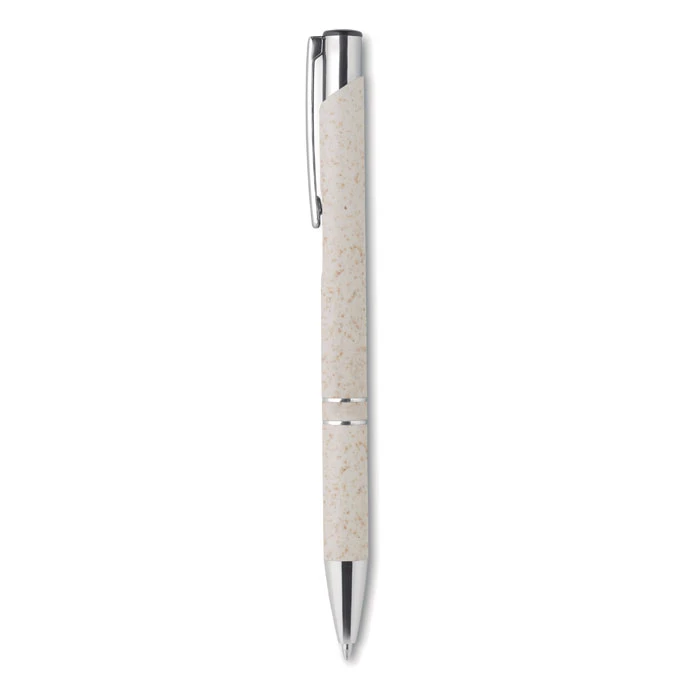 Długopis z przyciskiem 50% słomy pszennej 50% materiału ABS ze srebnym wykończeniem.Niebieski atrament.