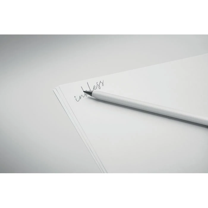 Wieczny długopis bezatramentowy z aluminium pochodzącego z recyklingu. Długopis pisze za pomocą grafitowej końcówki z plastikową osłoną.