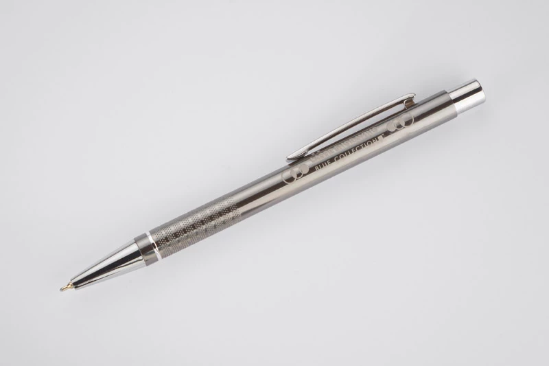 Długopis BONITO to klasyczny elegancki długopis metalowy o metalicznych kolorach z chromowanymi wykończeniami. Wykonany z aluminium. Korpus ozdobiony srebrnym ringiem na dole oraz paskami o delikatnie chropowatej strukturze. Nowy typ wkładu z tuszem półżelowym o grubości pisania 0,7 mm. Wkład w kolorze niebieskim.