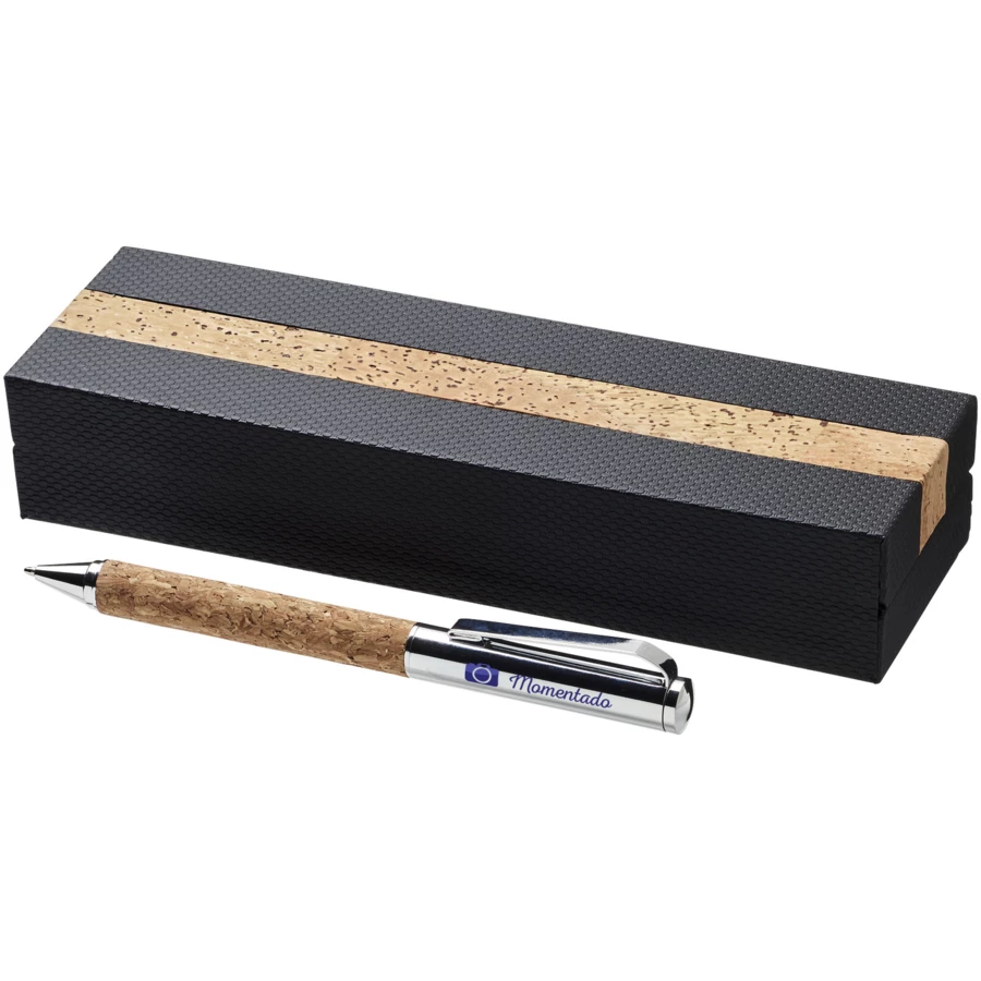Długopis przekręcany z detalami z korka. Zapakowany w pudełko upominkowe „LUXE”.