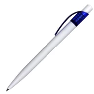Plastikowy długopis promocyjny. Wyposażony w niebieski wkład.
