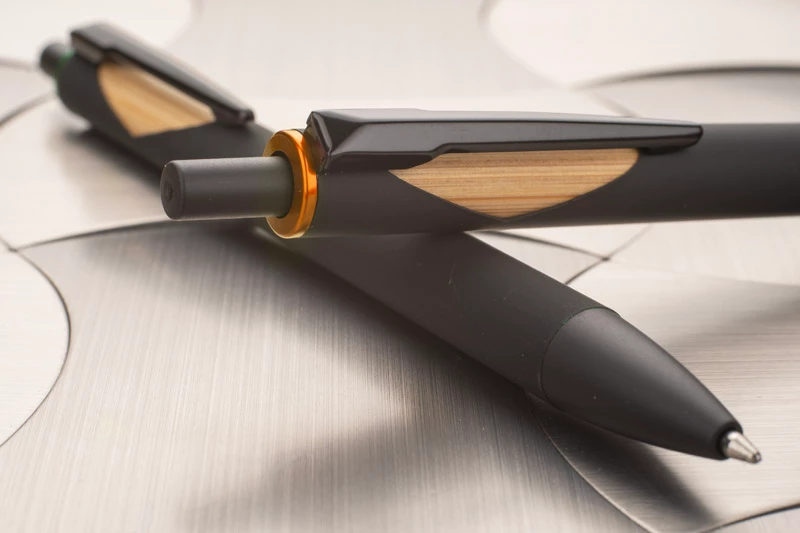 Długopis FRANK posiada przyjemną w dotyku powierzchnię soft touch. Bambusowy element wraz z metalicznym wykończeniem sprawiają, że długopis wygląda elegancko i nowocześnie.
