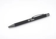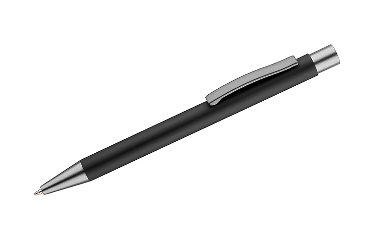 Długopis GOMA to prosty design połączony z przyjemną w dotyku gumowaną powierzchnią. Całość jest utrzymana w lekkich, matowych barwach. Wykonany z aluminium. Wykończenia w kolorze grafitowym. Wkład w kolorze czarnym.