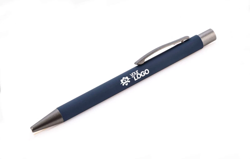 Długopis GOMA to prosty design połączony z przyjemną w dotyku gumowaną powierzchnią. Całość jest utrzymana w lekkich, matowych barwach. Wykonany z aluminium. Wykończenia w kolorze grafitowym. Wkład w kolorze czarnym.