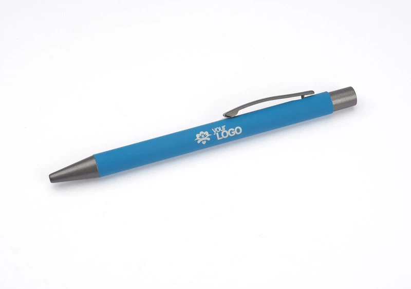Długopis GOMA to prosty design połączony z przyjemną w dotyku gumowaną powierzchnią. Całość jest utrzymana w lekkich, matowych barwach. Wykonany z aluminium. Wykończenia w kolorze grafitowym. Wkład w kolorze czarnym.