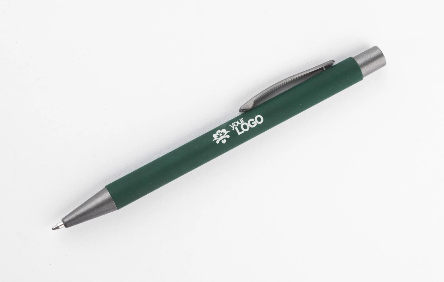 Długopis GOMA to prosty design połączony z przyjemna w dotyku gumowana powierzchnią. Całość jest utrzymana w lekkich, matowych barwach. Wykonany z aluminium. Wykończenia w kolorze grafitowym. Wkład w kolorze niebieskim.