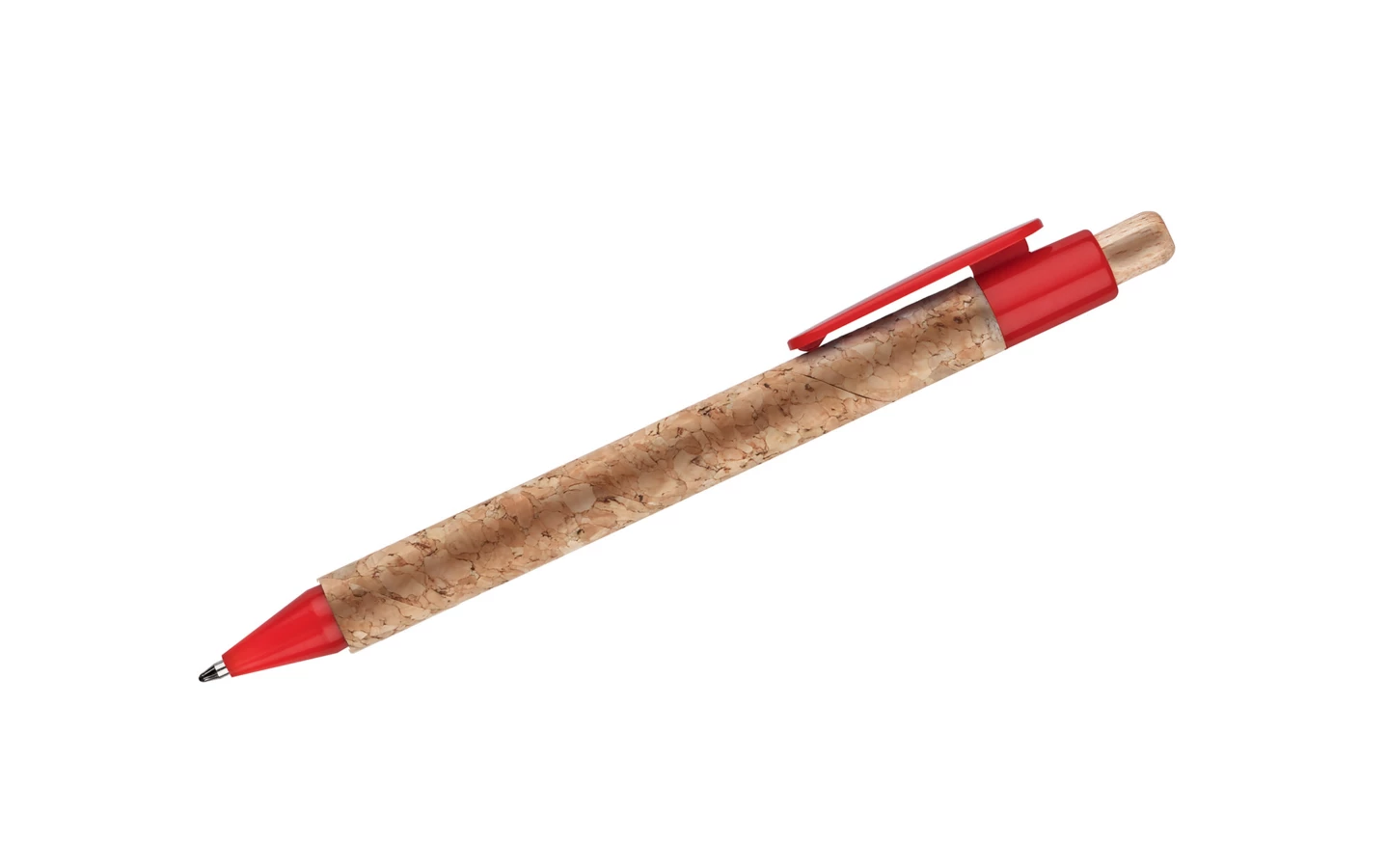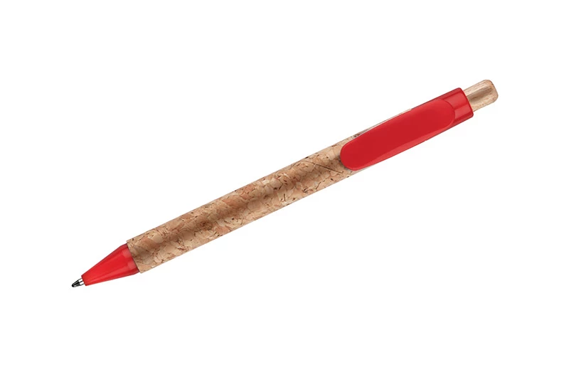 Długopis KORTE nawiązuje swoim wyglądem do idei recyclingu. Korpus został wykonany z naturalnego korka, a przycisk z drewna. Wykończenia z tworzywa sztucznego w żywych kolorach dodają mu uroku. Wkład w kolorze niebieskim.