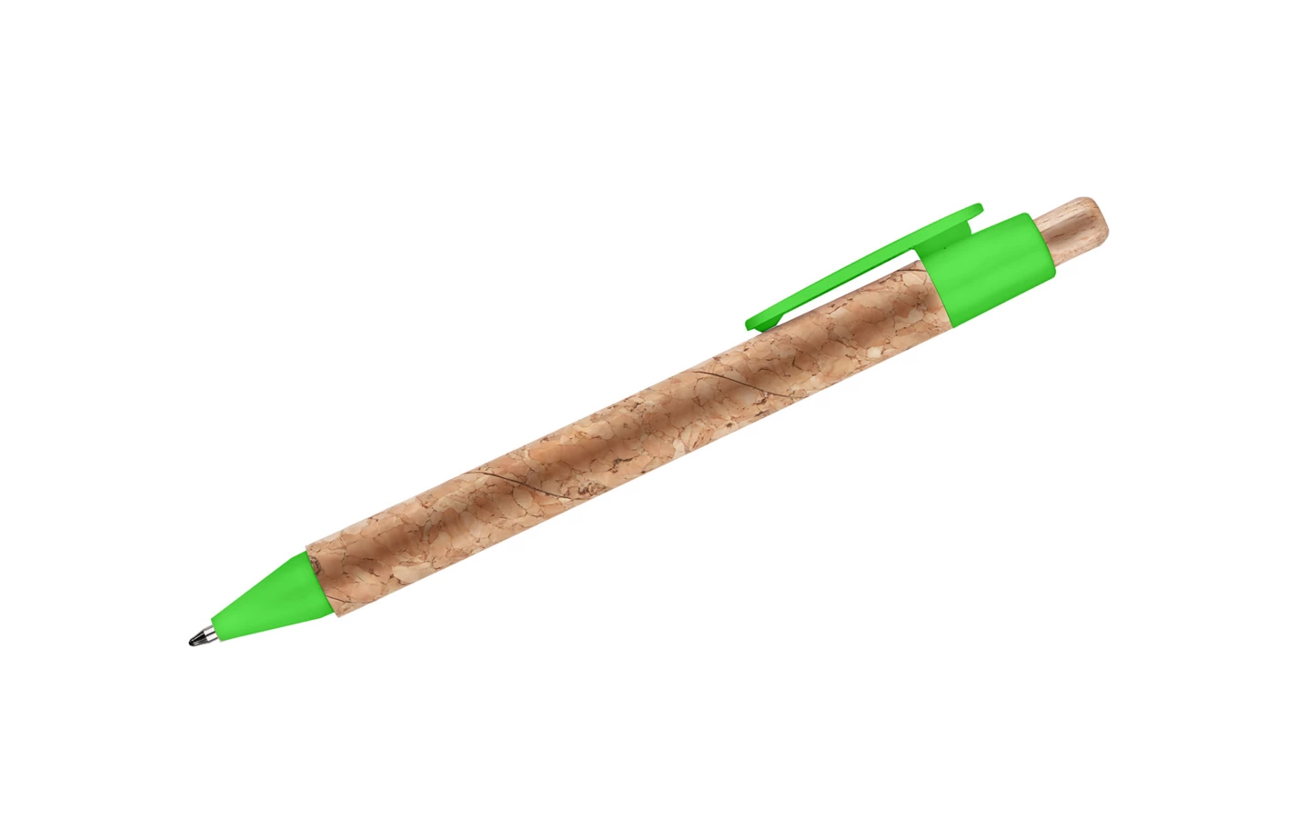 Długopis KORTE nawiązuje swoim wyglądem do idei recyclingu. Korpus został wykonany z naturalnego korka, a przycisk z drewna. Wykończenia z tworzywa sztucznego w żywych kolorach dodają mu uroku. Wkład w kolorze niebieskim.