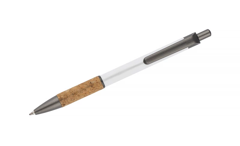 Długopis KUBOD to klasyczny model o prostym, eleganckim kształcie, idealny do znakowania. Aluminiowy korpus pokryty został matową powłoką soft touch, która zwiększa komfort użytkowania. Naturalny korek w części chwytnej przyciąga uwagę i wyróżnia produkt na tle standardowych modeli. Metaliczne akcenty z tworzywa dodają całości nowoczesnego charakteru. Długopis posiada mechanizm automatyczny i jest wyposażony w niebieski wkład typu X20 (wymienny, niedostępny w naszej ofercie).
