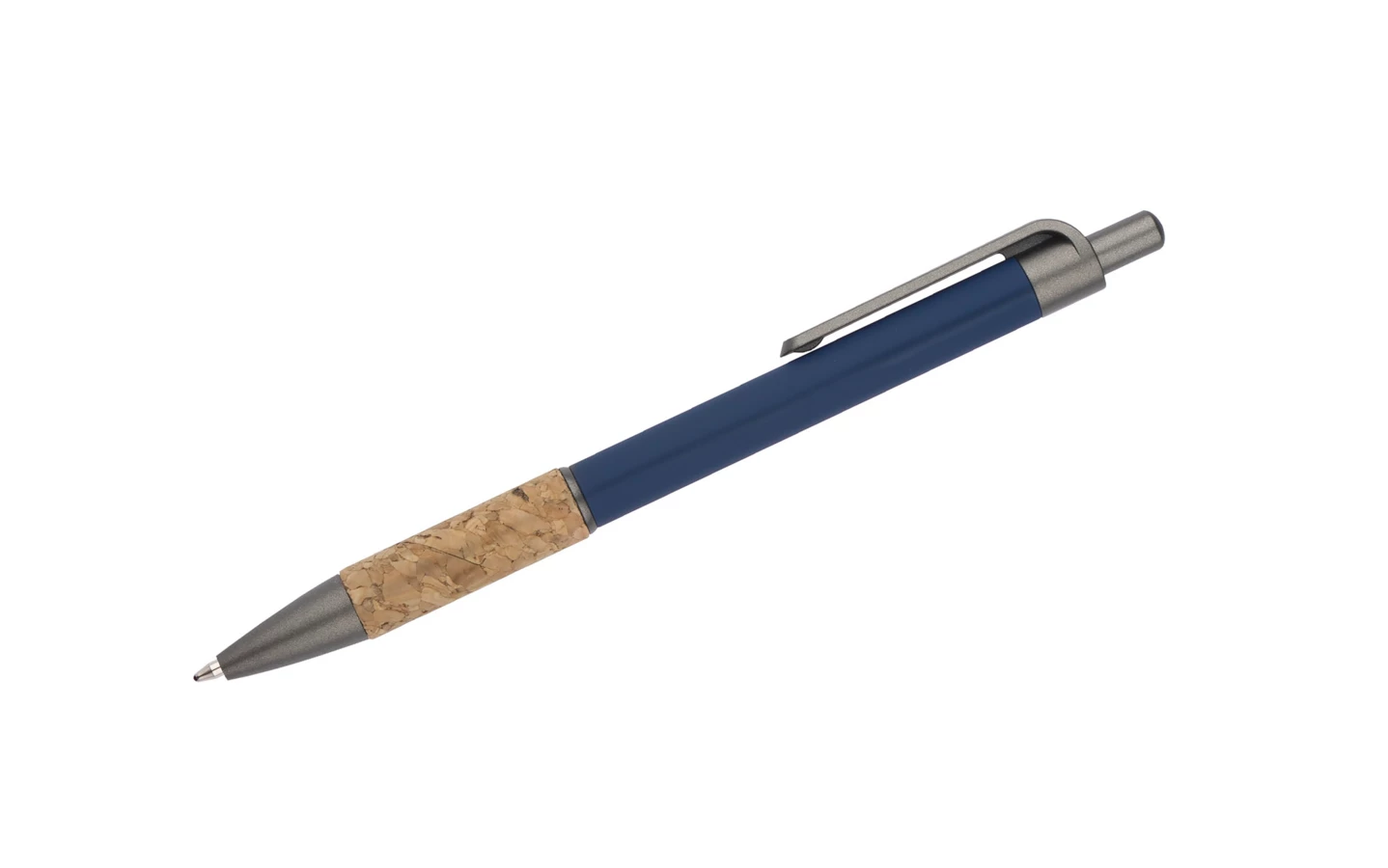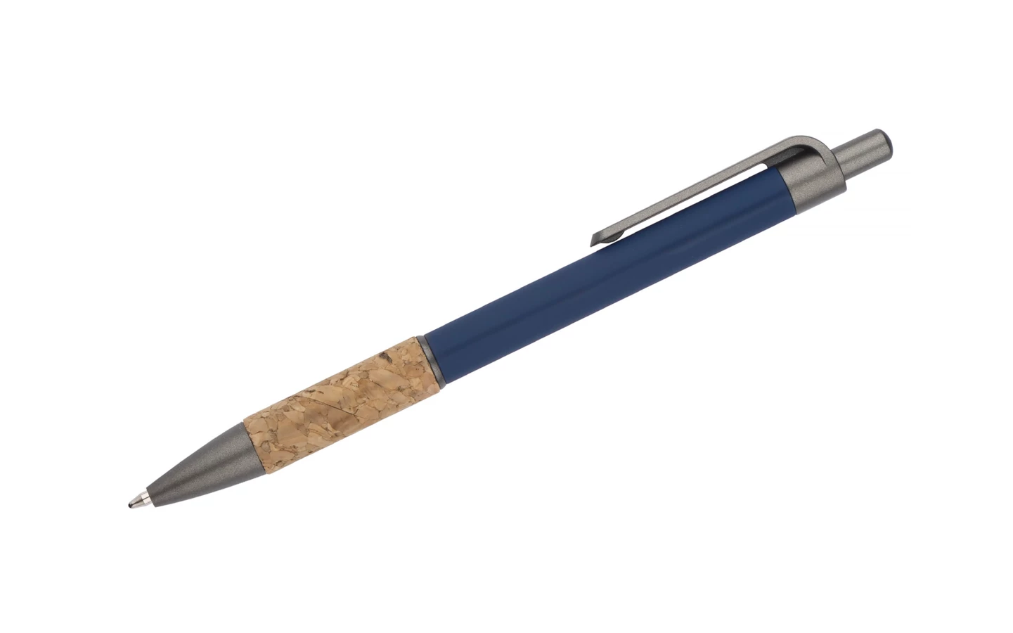 Długopis KUBOD to klasyczny model o prostym, eleganckim kształcie, idealny do znakowania. Aluminiowy korpus pokryty został matową powłoką soft touch, która zwiększa komfort użytkowania. Naturalny korek w części chwytnej przyciąga uwagę i wyróżnia produkt na tle standardowych modeli. Metaliczne akcenty z tworzywa dodają całości nowoczesnego charakteru. Długopis posiada mechanizm automatyczny i jest wyposażony w niebieski wkład typu X20 (wymienny, niedostępny w naszej ofercie).