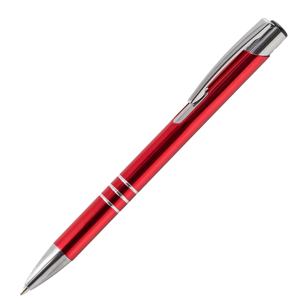 Długopis aluminiowy. Wyposażony w niebieski wkład.