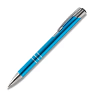 Długopis aluminiowy. Wyposażony w niebieski wkład.