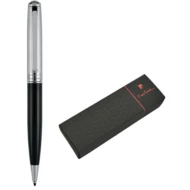 Metalowy długopis z czarnym, lakierowanym korpusem i srebrnymi elementami. Wyposażony w wysokiej jakości niebieski wkład z końcówką 1 mm. W zestawie z wkładem zapasowym piszącym na czarno. Zapakowany w eleganckie pudełko prezentowe z certyfikatem autentyczności Pierre Cardin.