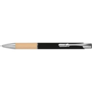 Piszący na niebiesko, półżelowy długopis wykonany z aluminium pochodzącego z recyklingu ze srebrnymi elementami i bambusową strefą uchwytu.