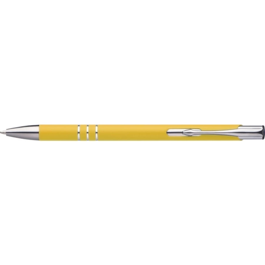 Metalowy długopis z gumową powierzchnią, piszący na niebiesko. Długopisy dostępne w bogatej gamie kolorystycznej.