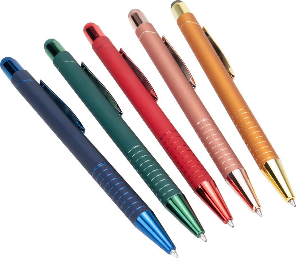 Długopis z końcówką do ekranów dotykowcyh touch-pen. Posiada błyszczące, lustrzane wykończenie.