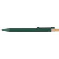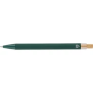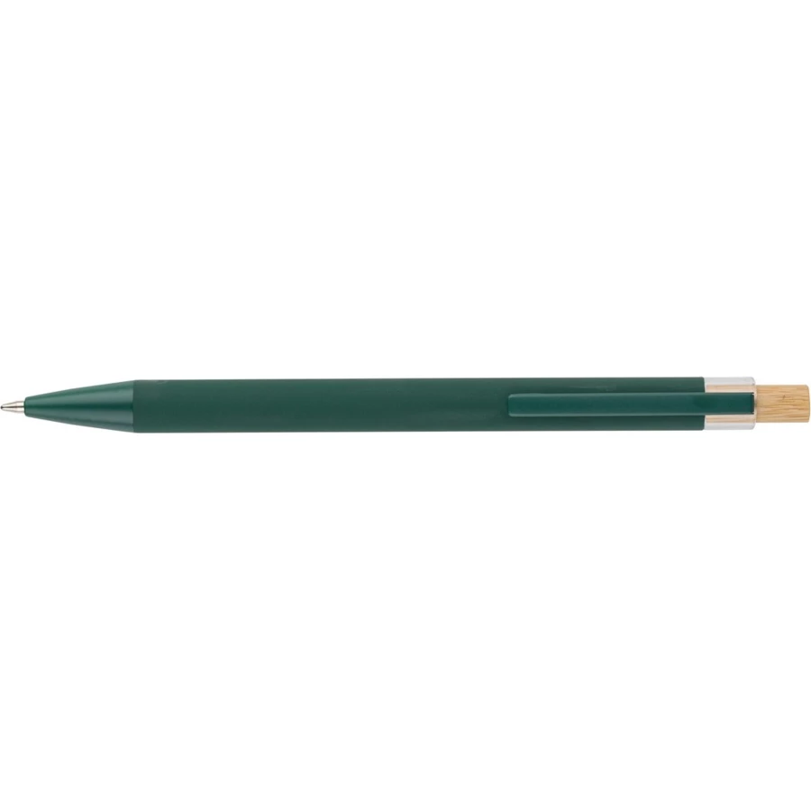 Długopis, bambusowy przycisk, metalowy klips, wkład w niebieskim kolorze, ikona recyklingu na produkcie, wystarcza na ok. 800 m pisania, produkt wykonany z ABS z recyklingu, aluminium i bambusa