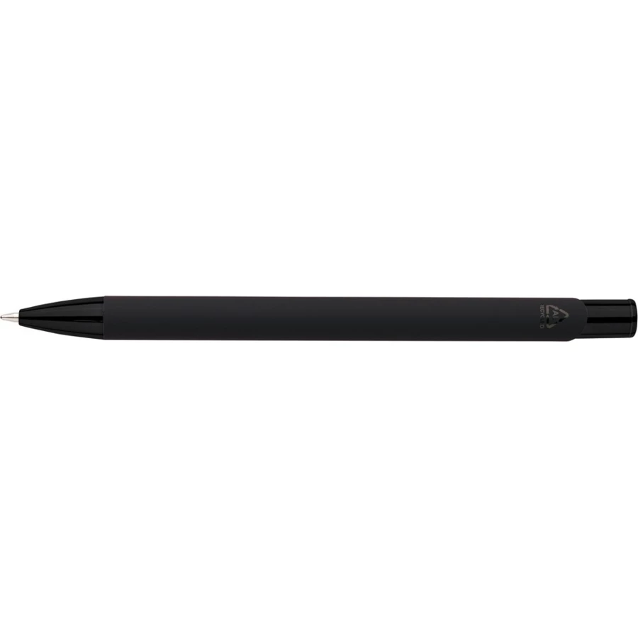 Długopis, metalowy klips, wkład w niebieskim kolorze, ikona recyklingu na produkcie, wystarcza na ok, 800 m pisania, produkt wykonany z ABS z recyklingu, aluminium z recyklingu i metalu