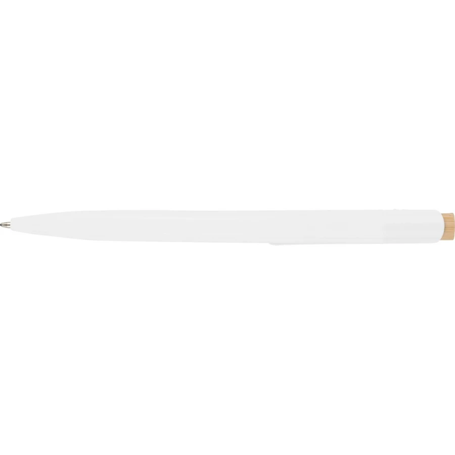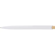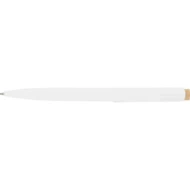 Długopis, bambusowy przycisk, metalowy klips, wkład w niebieskim kolorze, ikona recyklingu na produkcie, wystarcza na ok. 600 m pisania, produkt wykonany z ABS z recyklingu, aluminium i bambusa