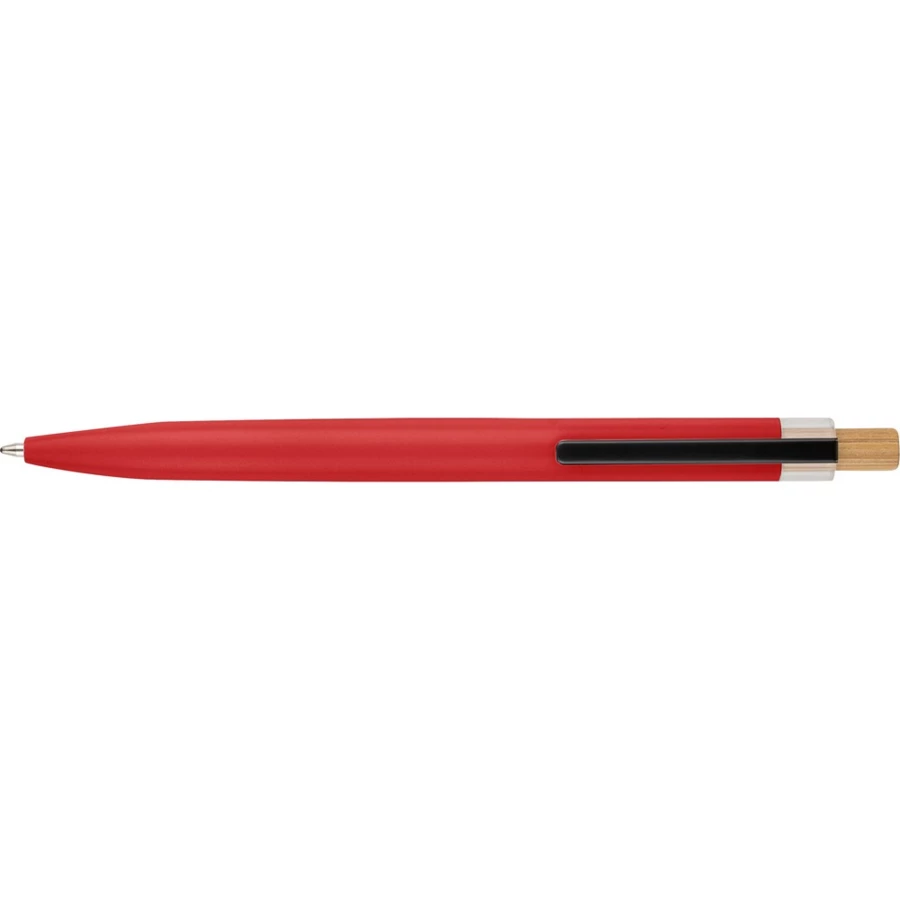 Długopis, wkład w niebieskim kolorze, wystarcza na ok. 700 m pisania, ikona recyklingu na produkcie, produkt wykonany z aluminium, RPET i z przyciskiem z bambusa
