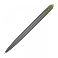 Długopis wykonany z plastiku z recyklingu, z kolorowymi akcenatami i wkładem piszącym na niebiesko.