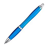 Długopis plastikowy z antypoślizgową gumką oraz z błyszczącymi elementami. Wyposażony w system typu kilk oraz wkład w kolorze niebieskim. Długopis dostępny w bogatej gamie kolorystycznej.