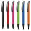 Długopis plastikowy z metalowym klipsem, wyposażony w mechanizm obrotowy. Posiada niebieski wkład piszący na niebiesko, dostępny jest w kilku wersjach kolorystycznych.