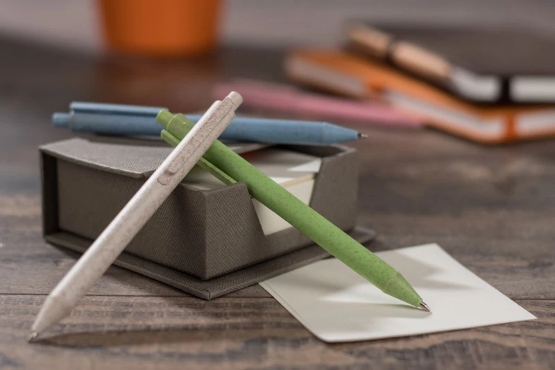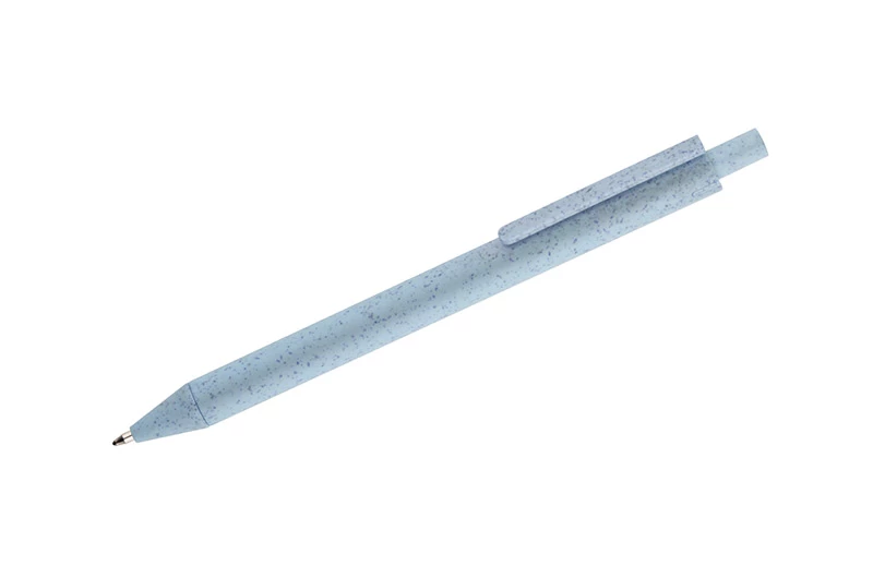 Długopis REVI został wykonany z myślą o wszystkich, którym bliska jest idea redukowania odpadów z tworzywa sztucznego. Tradycyjne tworzywo sztuczne zostało zastąpione specjalnym materiałem wykonanym w 40% z naturalnej słomy. Klasyczny, prosty kształt czyni go uniwersalnym gadżetem. Długopis automatyczny. Wkład typu X20 w kolorze niebieskim.