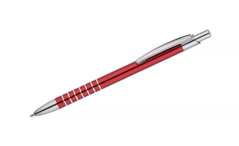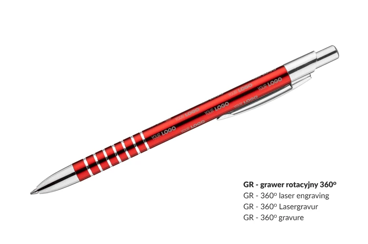 Prosty długopis wykonany z aluminium ozdobiony szerokimi ringami. Logo wygrawerujemy.