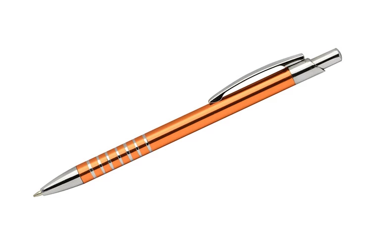 Prosty długopis wykonany z aluminium ozdobiony szerokimi ringami. Logo wygrawerujemy.