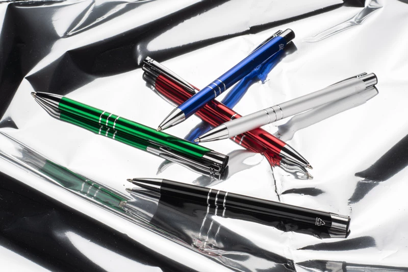 Przedstawiamy bestsellerowy długopis KALIPSO o eleganckiej chromowanej powierzchni, teraz dostępny w nowej, ekologicznej odsłonie: wykonany z aluminium z recyklingu (rKALIPSO). Ten automatyczny długopis z trzema stylowymi ringami i niebieskim wkładem, łączy nowoczesny design z funkcjonalnością. Chromowana powierzchnia nadaje mu prestiżowy wygląd, idealny do profesjonalnych zastosowań. Możliwość znakowania logo na powierzchni czyni go doskonałym narzędziem promocyjnym.