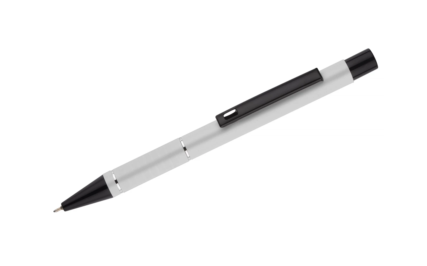 Długopis SATO łączy w sobie niezawodność, piękno i funkcjonalność. Wykonany jest z lekkiego aluminium, a czarne wykończenie nadaje mu elegancji i prestiżu, sprawiając, że doskonale sprawdzi się jako produkt reklamowy w każdej branży. Korpus długopisu został ozdobiony dwoma srebrnymi ringami oraz paskami o delikatnie chropowatej strukturze, dodając mu przyjemnie sensorycznego wymiaru. Wkład z tuszem pół żelowym zapewnia niesamowicie gładkie i płynne pisanie. Grubość linii 0,7 mm pozwoli użytkownikom cieszyć się wyjątkowo precyzyjnymi notatkami, podkreśleniami i listami.