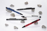 Długopis SATO łączy w sobie niezawodność, piękno i funkcjonalność. Wykonany jest z lekkiego aluminium, a czarne wykończenie nadaje mu elegancji i prestiżu, sprawiając, że doskonale sprawdzi się jako produkt reklamowy w każdej branży. Korpus długopisu został ozdobiony dwoma srebrnymi ringami oraz paskami o delikatnie chropowatej strukturze, dodając mu przyjemnie sensorycznego wymiaru. Wkład z tuszem pół żelowym zapewnia niesamowicie gładkie i płynne pisanie. Grubość linii 0,7 mm pozwoli użytkownikom cieszyć się wyjątkowo precyzyjnymi notatkami, podkreśleniami i listami.