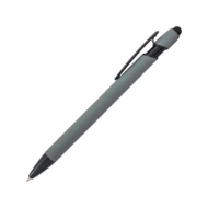 Aluminiowy długopis o przyjemnym w dotyku, satynowym wykończeniu z czarnymi elementami. Wyposażony w końcówkę do ekranów dotykowych. Niebieski wkład.