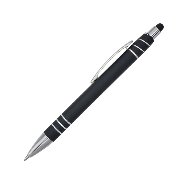 Długopis z aluminium z końcówką do ekranów dotykowych i obrotowym elementem. Niebieski wkład.