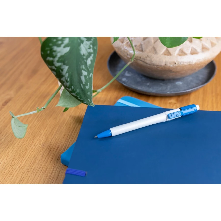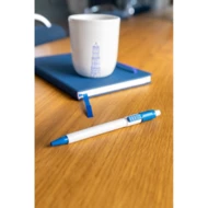 Długopis Stilolinea Baron z wkładem jumbo, biały trzon, kolorowy klips, wkład w niebieskim kolorze, zawiera tusz German Dokumental Ink, produkt wykonany z ABS, plastiku i metalu