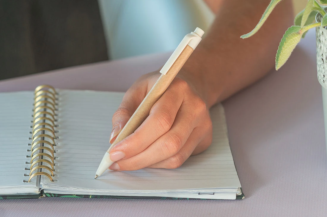 Ekologiczny długopis wykonany z tektury (pochodzącej z recyklingu) oraz specjalnie utwardzanych włókien kukurydzianych (końcówka pisząca, klips i mechanizm wysuwania wkładu). Długopis posiada niebieski wkład.