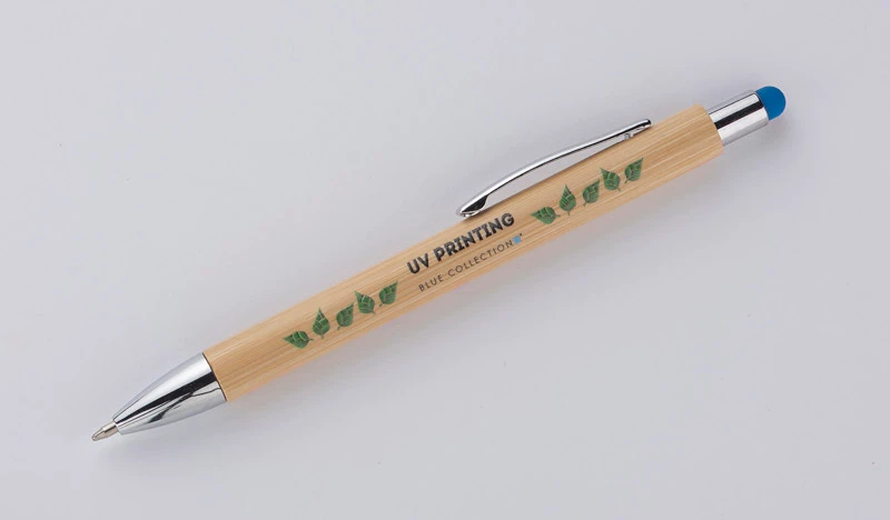 TUSO to długopis, którego korpus został w całości wykonany z bambusa. Chromowane wykończenia nadają mu elegancji. Kolorowa końcówka do obsługi ekranów dotykowych stanowi ciekawą ozdobę. Długopis automatyczny. Wkład typu G2 w kolorze niebieskim.