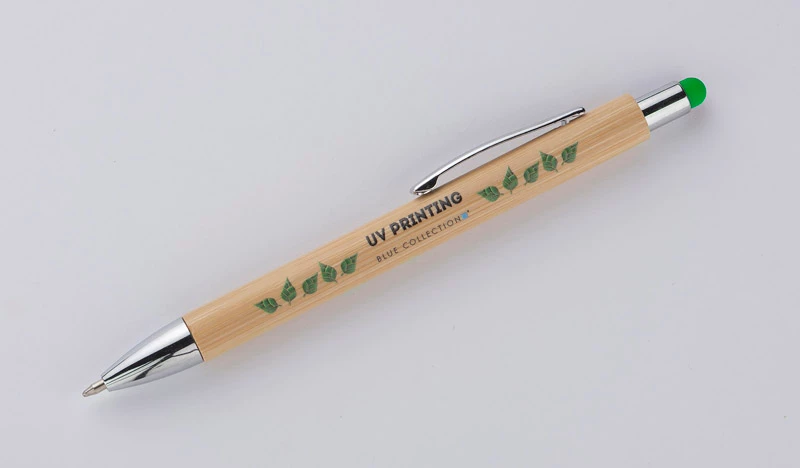 TUSO to długopis, którego korpus został w całości wykonany z bambusa. Chromowane wykończenia nadają mu elegancji. Kolorowa końcówka do obsługi ekranów dotykowych stanowi ciekawą ozdobę. Długopis automatyczny. Wkład typu G2 w kolorze niebieskim.